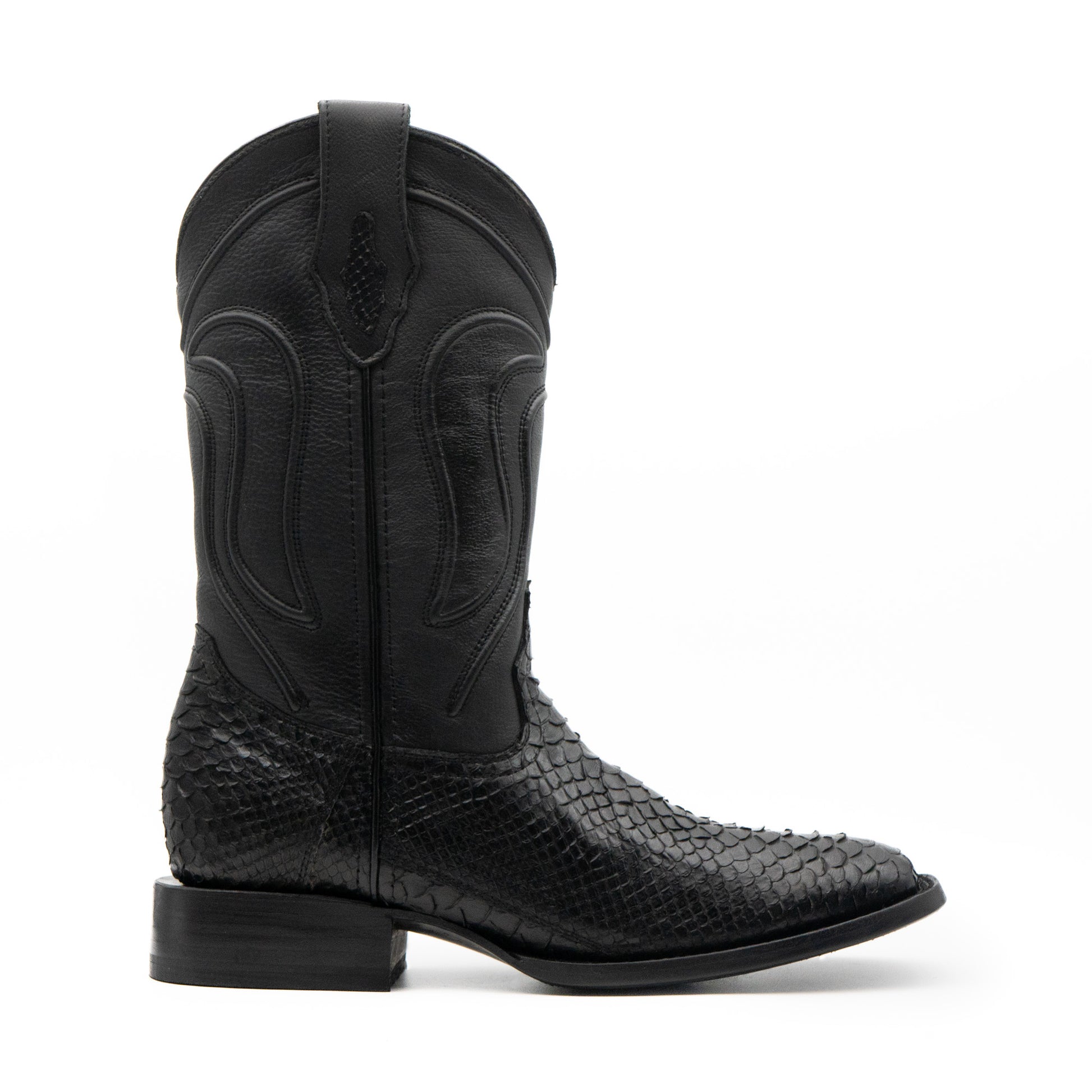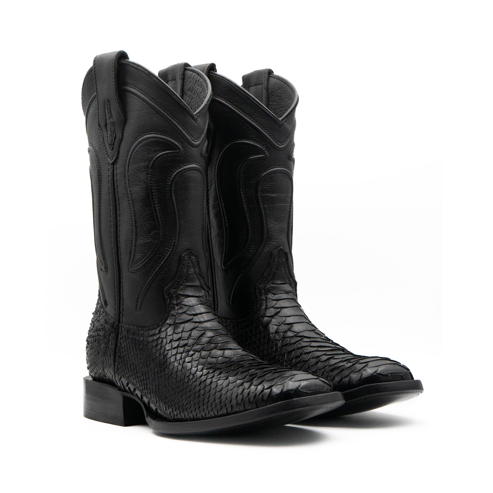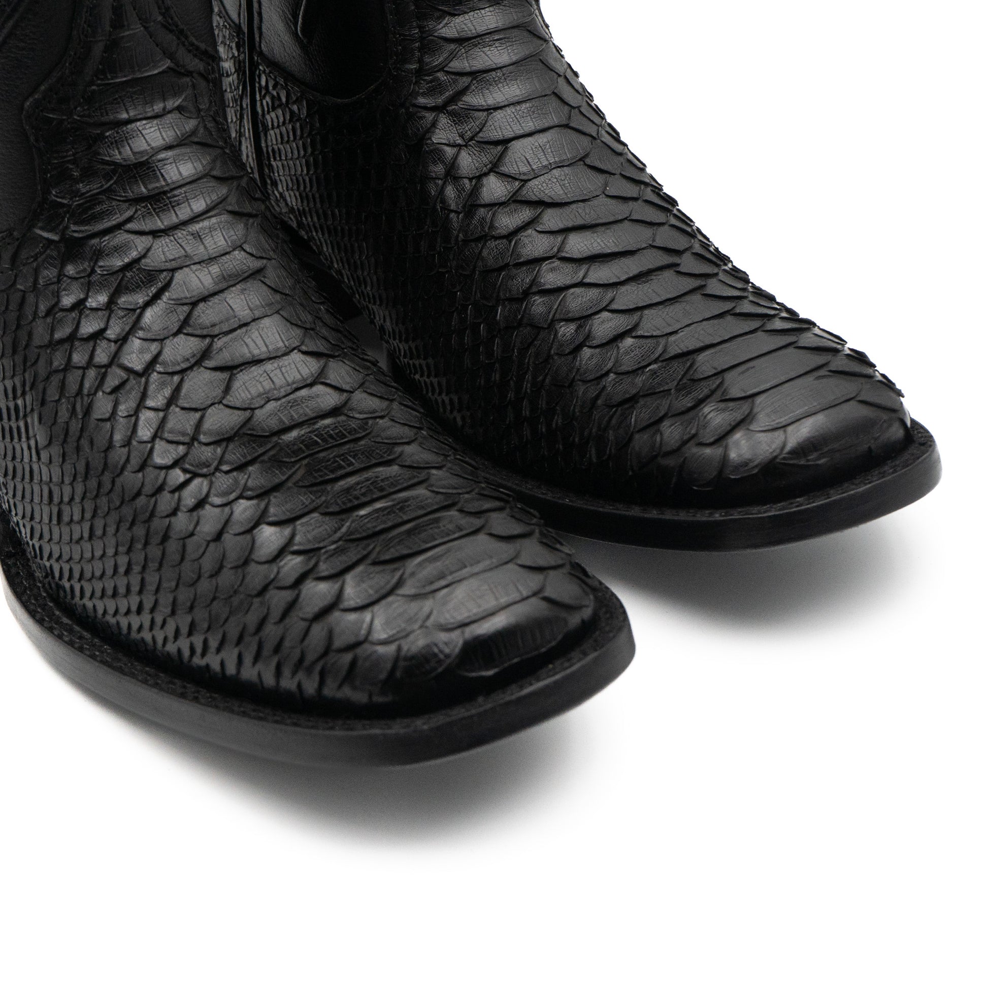 Bota exótica en piel autentica de Pitón negro- elegancia natural con espíritu vaquero.